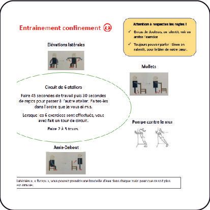 Il est important de maintenir un niveau d'activité physique suffisant pour préserver sa santé. Nous souhaitons vous mettre à disposition quelques séances Sport-Santé que vous pouvez réaliser facilement à votre domicile avec peu de matériel. Les enfants et les conjoints sont également les bienvenus.