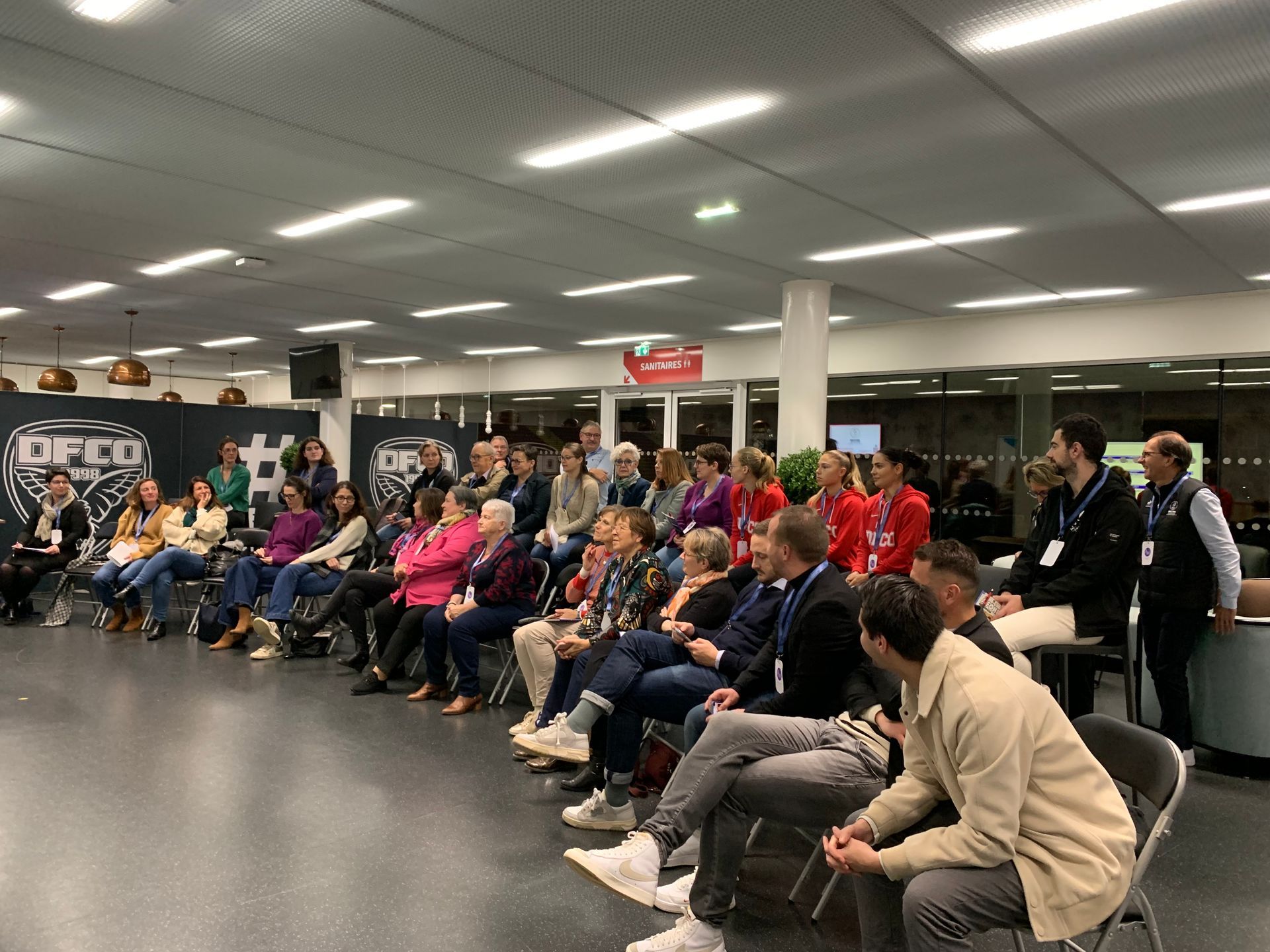 Avec pour Grand Témoin, la journaliste Myriam ALIZON, fondractrice et rédactrice en cheffe du magazine À fond !, accompagnée des joueuses du DFCO féminin.